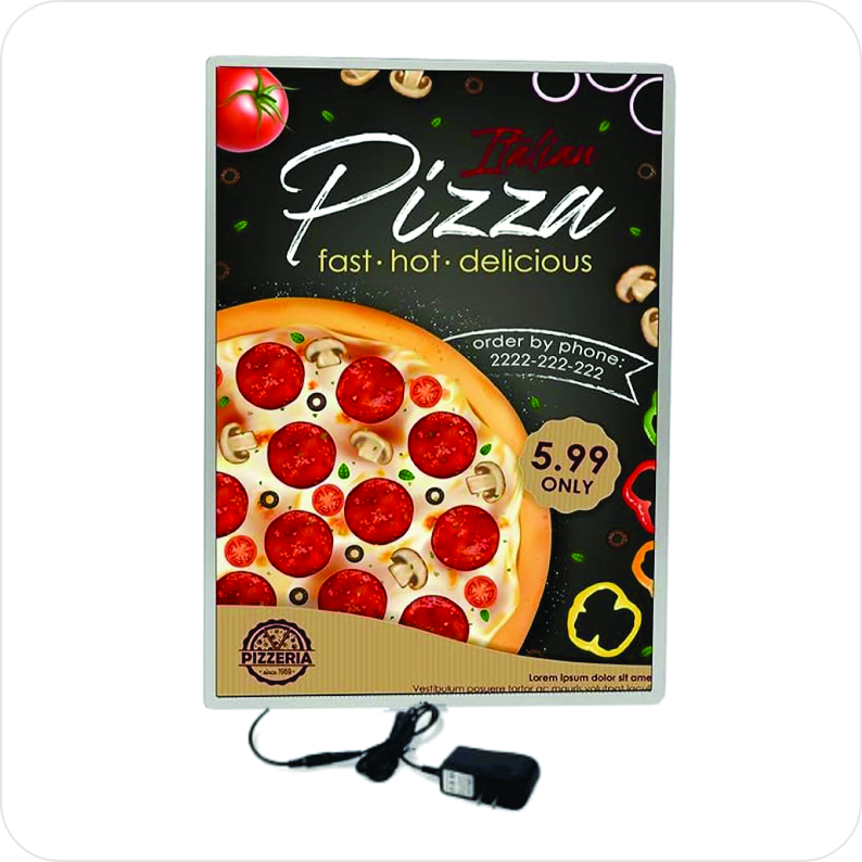 Slim LED Light Boards Slim LED light boards are used for various purposes, including displaying advertisements in business like restaurants and retial stores, showcasing photos in a modern way and providing portable or task lighting for hobbies like drawing or reading. Related Products Clipon Board Backlit Fabric Board Acrylic Name Plates
