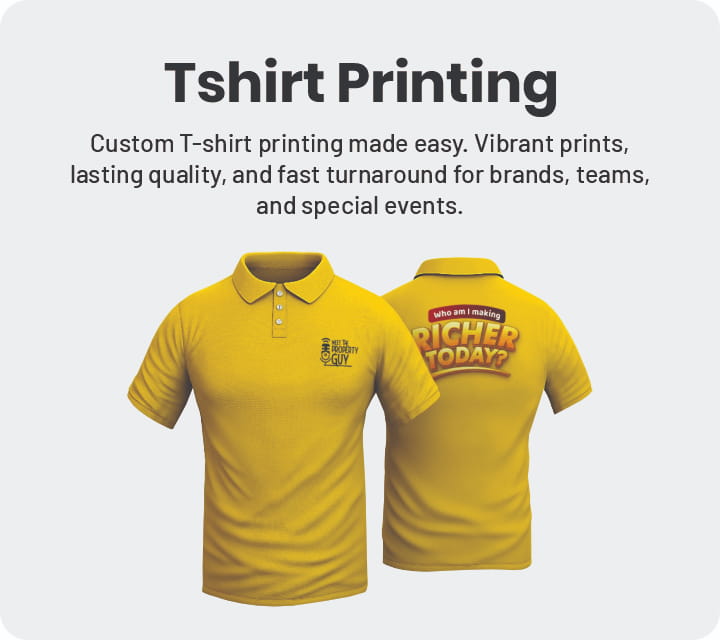 Shop by shapes Select from various shapes & sizes. Read more Promotional Items Round Neck Tshirt Rated 0 out of 5(0) Read more Promotional Items Polo Neck Tshirt Rated 0 out of 5(0) Read more Promotional Items Graphic T-Shirt Rated 0 out of 5(0) Read more Promotional Items Full Sleeve Tshirt Rated 0 out of 5(0)